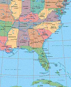 Alabama, Arkansas, Delaware, Florida, Georgia, Illinois, Indiana, Kentucky, Louisiana, Maryland, Mississippi, Missouri, New Jersey, North Carolina, Ohio, Pennsylvania, South Carolina, Tennessee, Virginia, D.C., West Virginia, Bahamas, Cuba, USA,